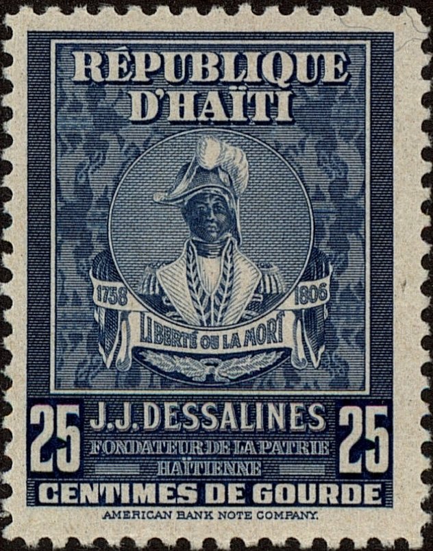 Visibility: public Image owner: none postage 10/17/1947 25c dpbl issue=1947 d=Dessalines (1947) unwmk Crops No visible images cropped from this one. Measurements Resolution is unknown. Source Source name: Colnect File URL: http://i.colnect.net/b/3650/939/Jean-Jacques-Dessalines-1758–1806.jpg Uploaded June 27, 2017, 4:18 pm by Stan Shebs |