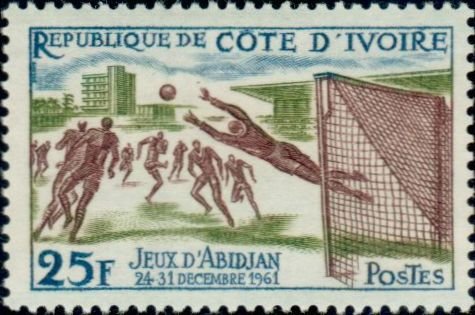 Visibility: public Image owner: none postage 12/23/1961 25fr multi issue=Abidjan Games d=soccer (1961) unwmk Crops No visible images cropped from this one. Measurements Resolution is unknown. Source Source name: Colnect File URL: http://i.colnect.net/b/3772/553/Soccer.jpg Uploaded June 28, 2017, 1:26 am by Stan Shebs |