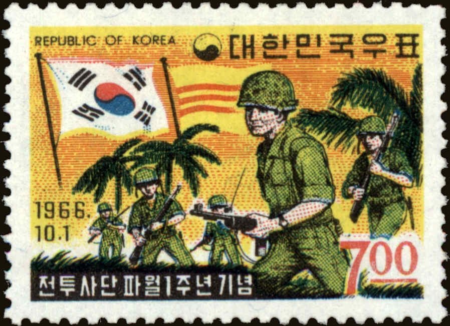 Visibility: public Image owner: none postage 10/1/1966 7w multi issue=troops in Vietnam 1st d=flags of Korea & Vietnam & soldiers unwmk Crops No visible images cropped from this one. Measurements Resolution is unknown. Source Source name: Colnect File URL: http://i.colnect.net/b/3946/238/Soldiers-and-Flags-of-Korea-and-Vietnam.jpg Uploaded June 28, 2017, 10:41 pm by Stan Shebs |