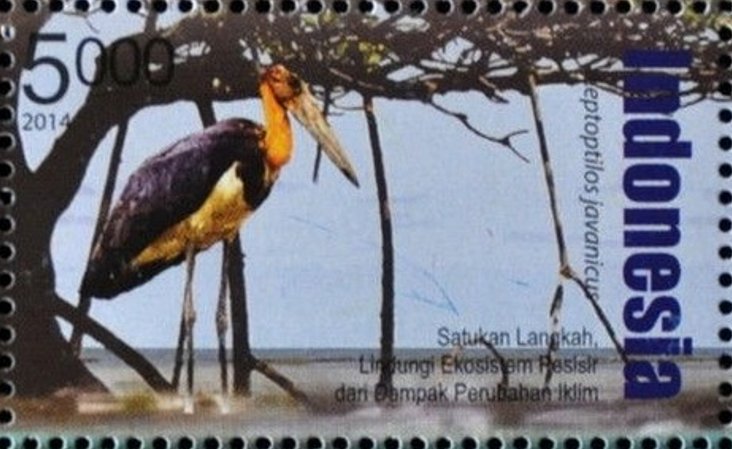 Visibility: public Image owner: none postage 6/5/2014 5000r multi issue=Environmental Care d=Leptoptilos javanicus (2014) unwmk perf=13.5x12.5 Crops No visible images cropped from this one. Measurements Resolution is unknown. Source Source name: Colnect File URL: http://i.colnect.net/b/3765/011/Lesser-Adjutant-Leptoptilos-javanicus.jpg Uploaded June 29, 2017, 4:07 pm by Stan Shebs |