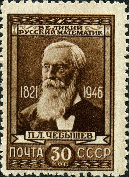 Visibility: public Image owner: none postage 5/25/1946 30k brn issue=125th Birth Anniversary of Pafnuty Chebyshev d=Chebyshev unwmk perf=12 Crops No visible images cropped from this one. Measurements Resolution is unknown. Source Source name: Colnect File URL: http://i.colnect.net/b/1069/732/Pafnuty-L-Chebyshev-1821-1894-Russian-mathematician.jpg Uploaded August 25, 2014, 6:12 pm by Stan Shebs |