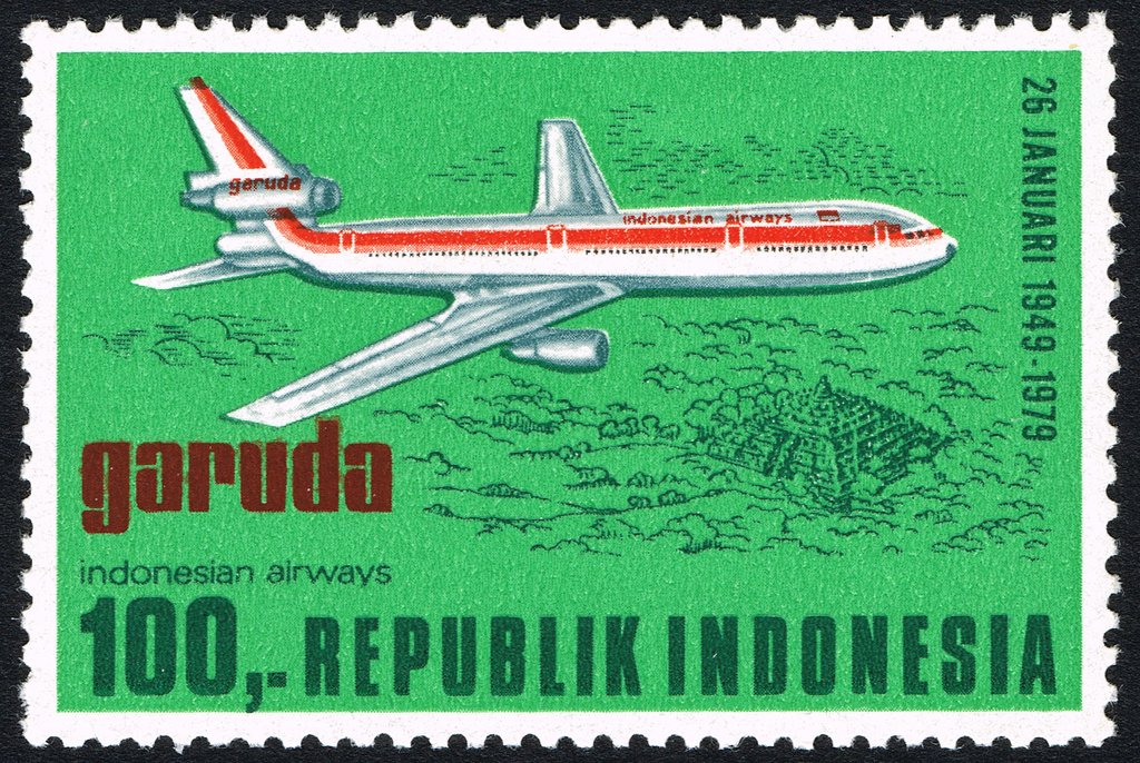 Visibility: public Image owner: none postage 1/26/1979 100r multi issue=30th Anniversary of Garuda Indonesian Airways unwmk perf=12.5 Crops No visible images cropped from this one. Measurements Resolution is unknown. Source Source name: Colnect File URL: http://i.colnect.net/b/2209/555/Garuda-Indonesia-Airways.jpg Uploaded June 29, 2017, 7:55 pm by Stan Shebs |