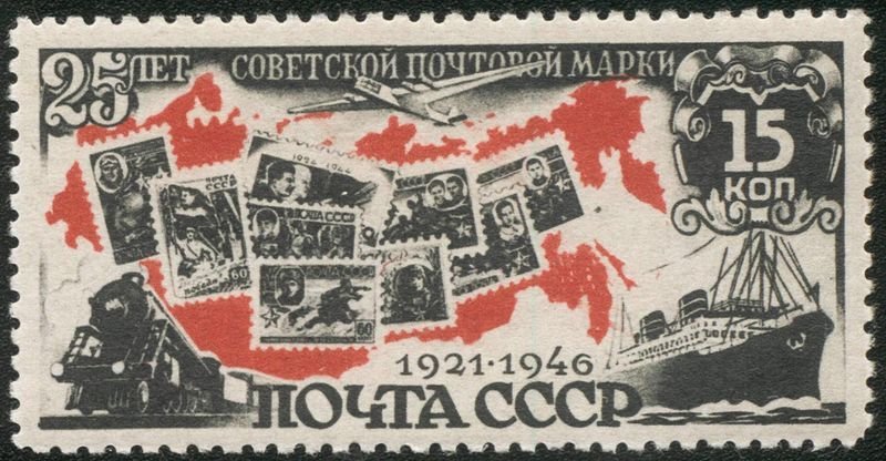 Visibility: public Image owner: none postage 11/6/1946 15k blk&red issue=Soviet stamp 25th d=stamps & map & transportation unwmk perf=12 Crops No visible images cropped from this one. Measurements Resolution is unknown. Source Source name: Colnect File URL: http://i.colnect.net/b/1069/763/Soviet-stamps-on-contour-map-of-the-USSR.jpg Uploaded August 25, 2014, 6:13 pm by Stan Shebs |