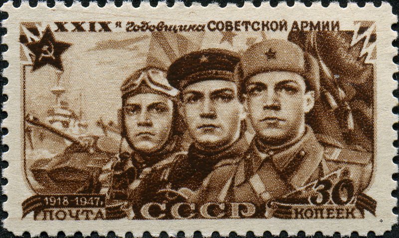 Visibility: public Image owner: none postage 2/23/1947 30k brn issue=Red Army 29th d=pilot & sailor & soldier unwmk perf=12 Crops No visible images cropped from this one. Measurements Resolution is unknown. Source Source name: Colnect File URL: http://i.colnect.net/b/1069/793/Airman-seaman-and-soldier.jpg Uploaded August 25, 2014, 6:13 pm by Stan Shebs |