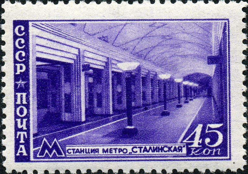 Visibility: public Image owner: none postage 9/7/1947 45k vio dt=Moscow subway d=Stalinskaya Metro station unwmk perf=12 Crops No visible images cropped from this one. Measurements Resolution is unknown. Source Source name: Colnect File URL: http://i.colnect.net/b/1069/803/Stalinskaya-Metro-station.jpg Uploaded August 25, 2014, 6:14 pm by Stan Shebs |