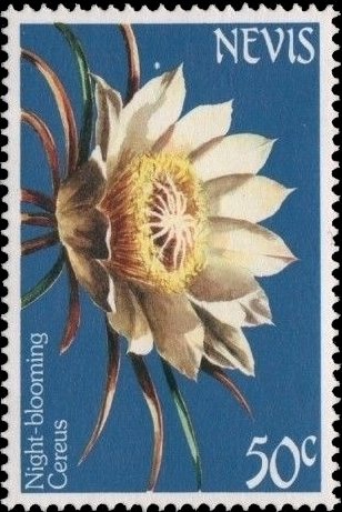 Visibility: public Image owner: none postage 8/8/1984 50c multi issue=1984 dt=flowers (1984 Nevis) d=Night-blooming Cereus wmk=crown & CA perf=14 Crops No visible images cropped from this one. Measurements Resolution is unknown. Source Source name: Colnect File URL: http://i.colnect.net/b/3052/243/Night-blooming-Cereus.jpg Uploaded June 30, 2017, 3:36 pm by Stan Shebs |