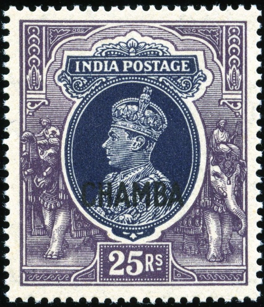 Visibility: public Image owner: none postage 1943 25r dkvio&blvio d=King George VI & elephants ovpt=CHAMBA oc=blk on=issuer=India-1937-25r wmk=mult stars Crops No visible images cropped from this one. Measurements Resolution is unknown. Source Source name: Colnect File URL: http://i.colnect.net/b/3172/493/King-George-VI.jpg Uploaded July 5, 2017, 11:04 am by Stan Shebs |