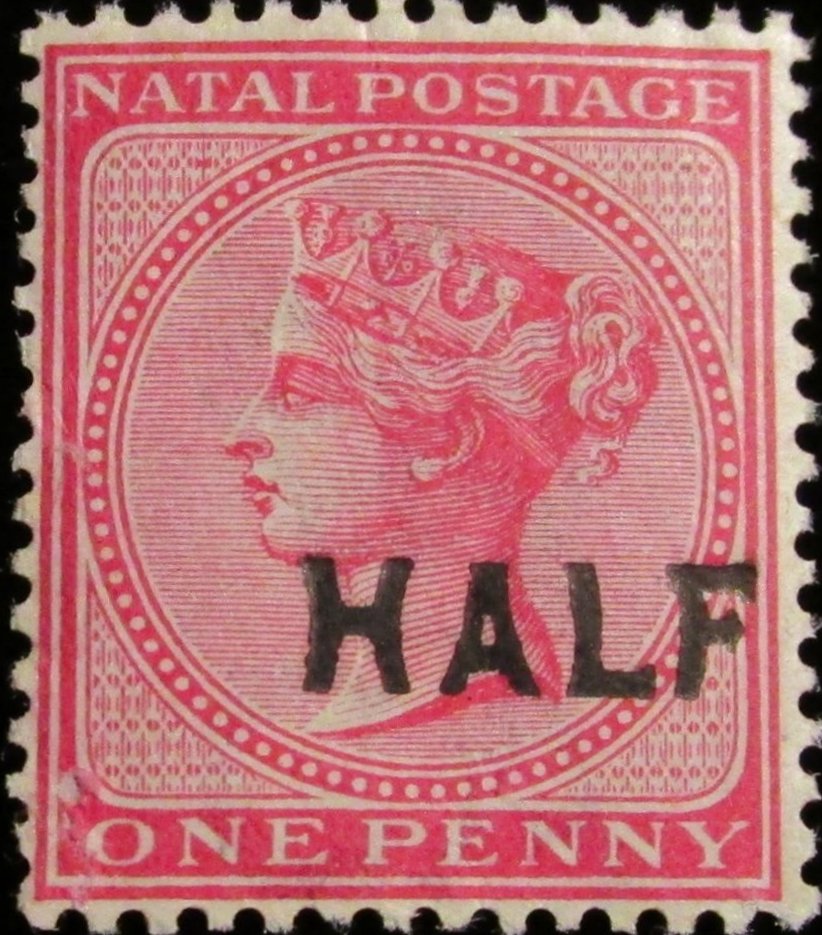 Visibility: public Image owner: none postage 3/18/1895 1/2d rose d=Queen Victoria (1874 Natal 1d) ovpt=HALF oc=blk on=1884-1p-rose wmk=crown & CA perf=14 Crops No visible images cropped from this one. Measurements Resolution is unknown. Source Source name: Colnect File URL: http://i.colnect.net/b/3819/923/Queen-Victoria-surcharged.jpg Uploaded July 6, 2017, 5:42 pm by Stan Shebs |