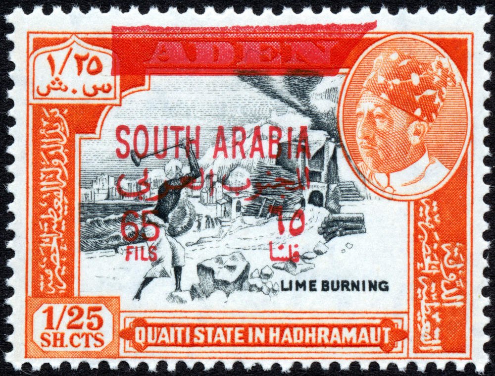 Visibility: public Image owner: none postage 4/1/1966 65f blk&org issue=1966 d=Lime-burning ovpt=SOUTH ARABIA oc=red on=1963-1sh25 wmk=St Edwards crown & CA perf=14 Crops No visible images cropped from this one. Measurements Resolution is unknown. Source Source name: Colnect File URL: http://i.colnect.net/b/3230/884/Lime-burner-overprinted-SOUTH-ARABIA.jpg Uploaded July 7, 2017, 5:55 pm by Stan Shebs |