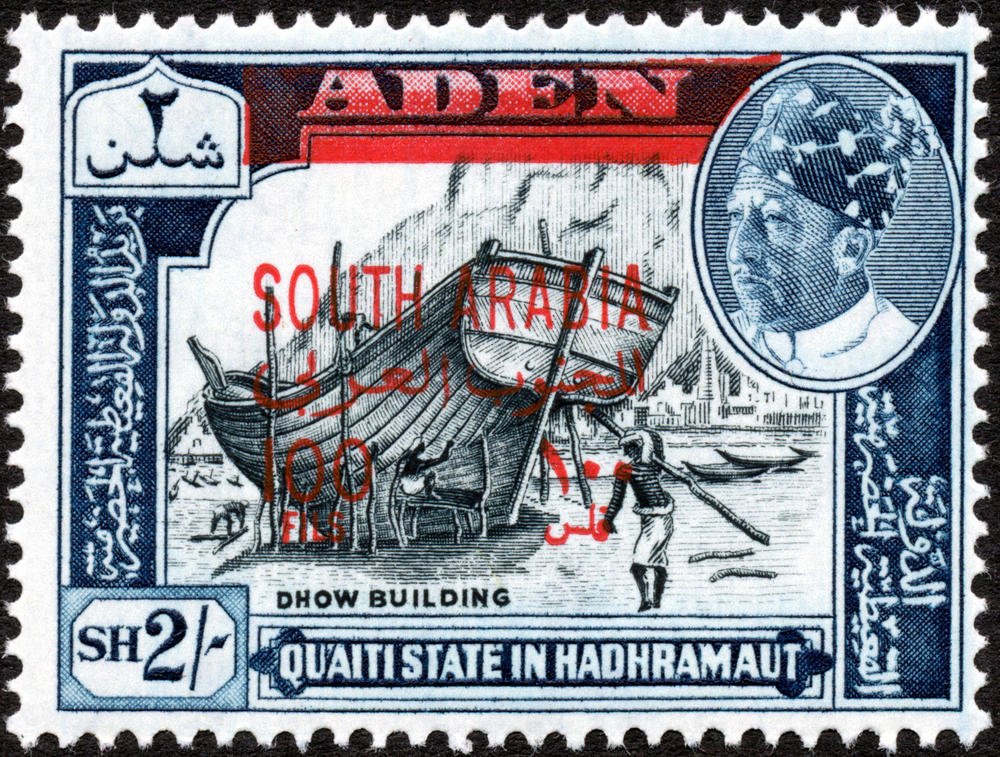 Visibility: public Image owner: none postage 4/1/1966 100f blk&bl issue=1966 d=dhow building ovpt=SOUTH ARABIA oc=red on=1963-2sh wmk=St Edwards crown & CA perf=14 Crops No visible images cropped from this one. Measurements Resolution is unknown. Source Source name: Colnect File URL: http://i.colnect.net/b/3230/885/Shipbuilding-overprinted-SOUTH-ARABIA.jpg Uploaded July 7, 2017, 5:55 pm by Stan Shebs |