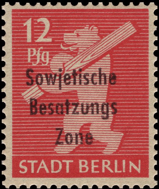 Visibility: public Image owner: none postage 9/1948 12pf issue=1948c dt=bear ovpt=Sowjetische//Besatzungs//Zone oc=blk on=issuer=Berlin-Brandenburg-12pf unwmk perf=14 Crops No visible images cropped from this one. Measurements Resolution is unknown. Source Source name: Colnect File URL: http://i.colnect.net/b/3688/514/Overprint-Sowjetiske-Besatzungs-Zone.jpg Uploaded July 9, 2017, 3:02 am by Stan Shebs |