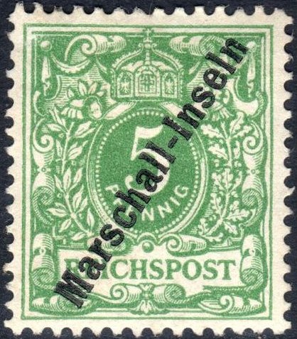 Visibility: public Image owner: none postage 5pf issue=1899 ovpt=Marshall-Inseln oc=blk on=issuer=Germany-5pf Crops No visible images cropped from this one. Measurements Resolution is unknown. Source Source name: Colnect File URL: http://i.colnect.net/b/3946/517/Overprint--Marschall-Inseln--on-Reichpost-Issue.jpg Uploaded July 9, 2017, 12:16 pm by Stan Shebs |