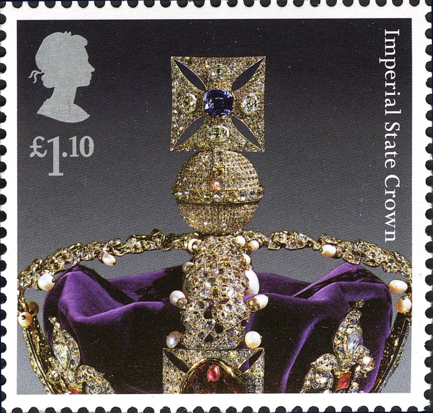 Visibility: public Image owner: none postage 8/23/2011 1.10£ multi issue=The Crown Jewels d=Imperial State Crown (2011) unwmk perf=14.5 Crops No visible images cropped from this one. Measurements Resolution is unknown. Source Source name: Colnect File URL: http://i.colnect.net/b/911/095/Imperial-State-Crown.jpg Uploaded January 23, 2014, 5:37 pm by Stan Shebs |