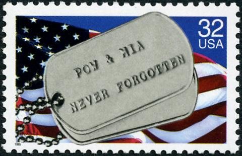Visibility: public Image owner: none postage 5/29/1995 32c multi issue=POW & MIA d=dog tags reading POW & MIA - Never Forgotten unwmk Crops No visible images cropped from this one. Measurements Resolution is unknown. Source Source name: Colnect File URL: http://i.colnect.net/b/200/447/POW---MIA---Never-Forgotten.jpg Uploaded August 25, 2014, 7:51 pm by Stan Shebs |