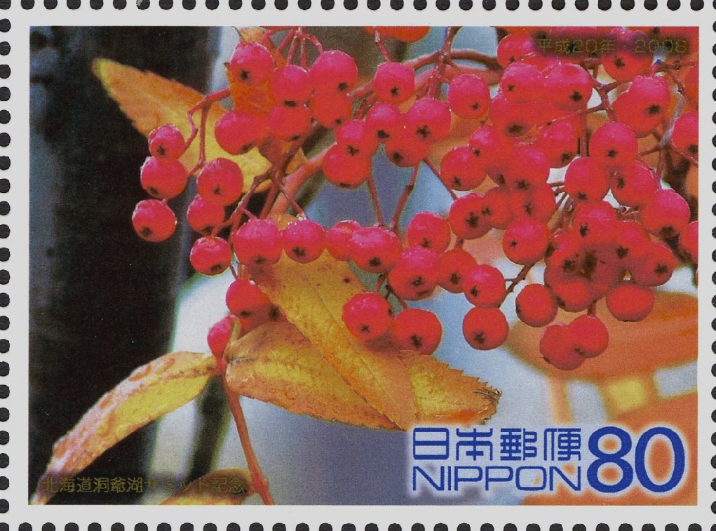 Visibility: public Image owner: none postage 7/7/2008 80y multi issue=G8 Hokkaido Toyako Summit 2008 d=Sorbus aucuparia (2008) unwmk perf=13.5 Crops No visible images cropped from this one. Measurements Resolution is unknown. Source Source name: Colnect File URL: http://i.colnect.net/b/4032/226/Japanese-Rowan.jpg Uploaded July 21, 2017, 11:28 am by Stan Shebs |