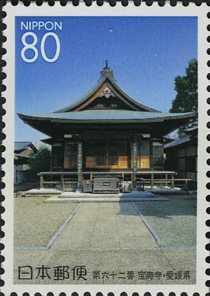 Visibility: public Image owner: none postage 7/8/2005 80y multi issue=The Cultural Heritage of Shikoku's Eighty-eight Temples No. 2 d=Houjuji Temple unwmk perf=13.5 Crops No visible images cropped from this one. Measurements Resolution is unknown. Source Source name: Colnect File URL: http://i.colnect.net/b/3989/851/62nd-Temple-Hōju-ji-Temple-of-Wealth-and-Happiness.jpg Uploaded July 21, 2017, 2:11 pm by Stan Shebs |
