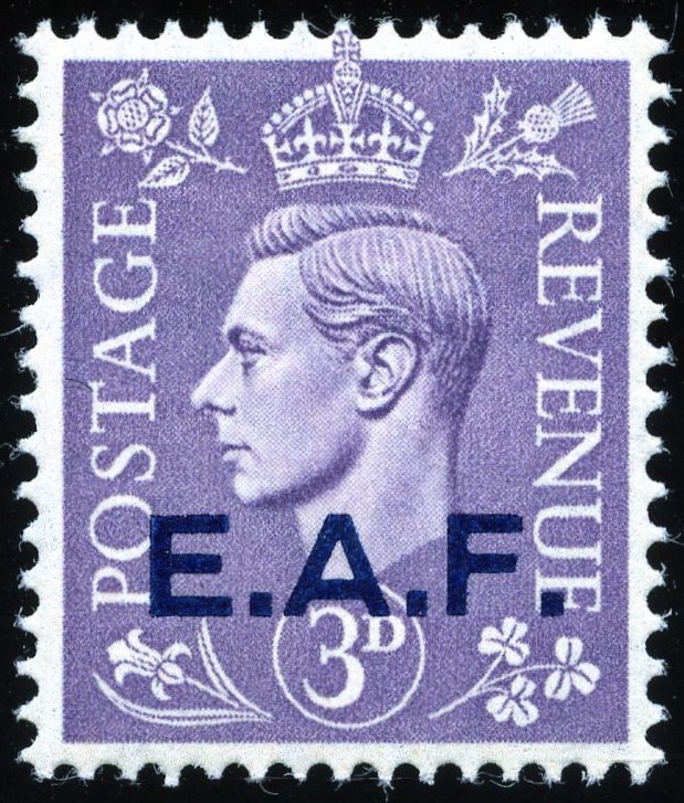 Visibility: public Image owner: none postage 1/15/1943 3d vio issue=1943 d=King George VI (1937 a) ovpt=E.A.F. oc=blk on=issuer=Great Britain-3d-vio-King George VI wmk=crown & GVIR perf=15x14 Crops No visible images cropped from this one. Measurements Resolution is unknown. Source Source name: Colnect File URL: http://i.colnect.net/b/3964/253/British-Stamp-Overprinted--quot-EAF-quot-.jpg Uploaded July 22, 2017, 3:02 pm by Stan Shebs |