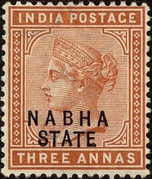Visibility: public Image owner: none Current identification: postage 1885 3a org issue=1885c dt=Empress Victoria d=Queen Victoria (1882 India 3a) ovpt=NABHA//STATE oc=blk on=issuer=India-1882-3a-org wmk=star Crops No visible images cropped from this one. Measurements Resolution is unknown. Source Source name: Colnect File URL: http://i.colnect.net/b/3317/760/Queen-Victoria-overprint.jpg Uploaded July 23, 2017, 11:32 am by Stan Shebs |