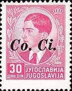 Visibility: public Image owner: none postage 30d brtpink issue=1941a d=King Peter II (1939) ovpt=Co.Ci. oc=blk on=issuer=Yugoslavia-issue=1939-30d unwmk Crops No visible images cropped from this one. Measurements Resolution is unknown. Source Source name: Colnect File URL: http://i.colnect.net/b/1945/509/Yugoslavia-Stamp-Overprint--Co-Ci-.jpg Uploaded July 23, 2017, 3:20 pm by Stan Shebs |