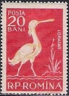 Visibility: public Image owner: none postage 12/27/1957 20b issue=Danube Delta Fauna dt=animals (1957 Romania) d=Eurasian or Common Spoonbill Platalea leucorodia wmk=RPR mult endless perf=14 Crops No visible images cropped from this one. Measurements Resolution is unknown. Source Source name: Colnect File URL: http://i.colnect.net/b/786/503/Eurasian-Spoonbill-Platalea-leucorodia.jpg Uploaded August 25, 2014, 9:18 pm by Stan Shebs |