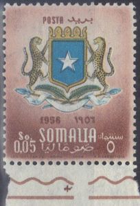 Visibility: public Image owner: none postage 5/6/1957 5c d=arms of Somalia wmk=stars perf=14 Crops No visible images cropped from this one. Measurements Resolution is unknown. Source Source name: Colnect (old) File URL: http://i.colnect.net/images/f/549/722/Institution-of-the-emblem-of-Somalia.jpg Uploaded December 10, 2012, 5:24 am by Stan Shebs |