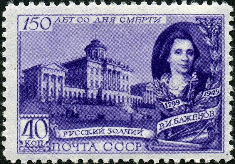 Visibility: public Image owner: none postage 8/14/1949 40k vio issue=Vasili Bazhenov death 150th d=Vasily Bazhenov unwmk perf=12 Crops No visible images cropped from this one. Measurements Resolution is unknown. Source Source name: Colnect File URL: http://i.colnect.net/b/1069/872/Vasily-I-Bazhenov-1737-38-1799-Russian-architect.jpg Uploaded August 25, 2014, 9:52 pm by Stan Shebs |