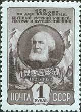 Visibility: public Image owner: none postage 2/1/1952 1r multi issue=Semenov 125th d=Semenov unwmk perf=12 Crops No visible images cropped from this one. Measurements Resolution is unknown. Source Source name: Colnect File URL: http://i.colnect.net/b/193/052/Pyotr-Semyonov-Tyan-Shansky-1827-1914-Russian-geographer.jpg Uploaded August 25, 2014, 9:53 pm by Stan Shebs |