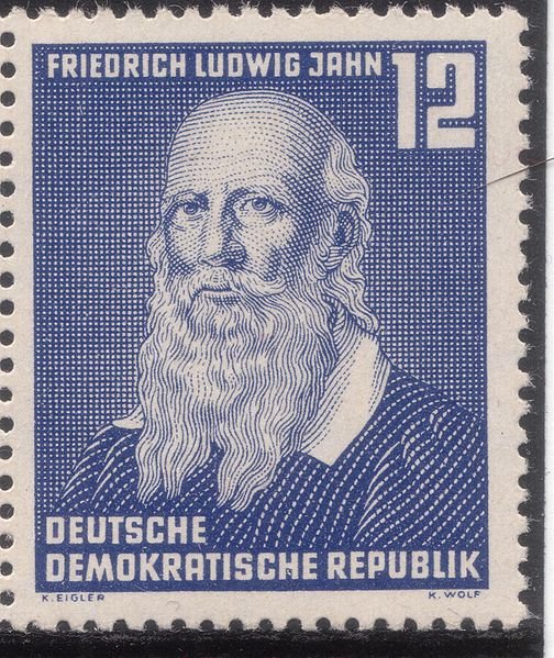 Visibility: public Image owner: none postage 10/15/1952 12pf bl issue=100th Anniversary of the Death of Friedrich Ludwig Jahn d=Jahn wmk=DDR & posthorn Crops No visible images cropped from this one. Measurements Resolution is unknown. Source Source name: Colnect File URL: http://i.colnect.net/images/b/510/767/100-Death-day-of---gymnastics-father---Friedrich-L-Jahn.jpg Uploaded August 25, 2014, 10:47 pm by Stan Shebs |