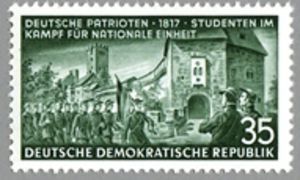 Visibility: public Image owner: none postage 11/1953 35pf grn issue=German Patriots dt=German patriots d=studentts outside Wartburg Crops No visible images cropped from this one. Measurements Resolution is unknown. Source Source name: Colnect (old) File URL: http://i.colnect.net/images/f/253/713/Wartburg-students.jpg Uploaded December 13, 2012, 12:07 am by Stan Shebs |