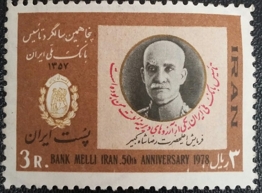 Visibility: public Image owner: none postage 9/11/1978 3r multi issue=50th Anniversary of the Iranian National Bank wmk=arms of Iran in circle perf=10.5 Crops No visible images cropped from this one. Measurements Resolution is unknown. Source Source name: Colnect File URL: http://i.colnect.net/b/3845/941/Rezā-Shāh-Pahlavī-1878-1944.jpg Uploaded August 14, 2017, 1:44 am by Stan Shebs |