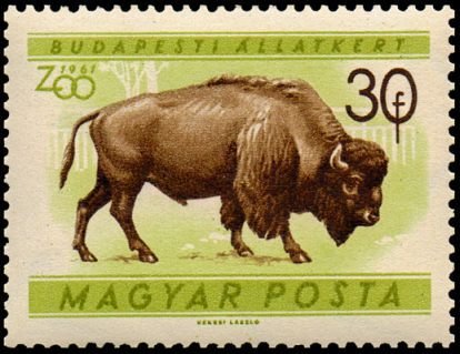 Visibility: public Image owner: none postage 2/24/1961 30f grnol&blkbrn issue=Budapest Zoo d=bison (1961) wmk=stars (Cuba) Crops No visible images cropped from this one. Measurements Resolution is unknown. Source Source name: Colnect File URL: http://i.colnect.net/images/b/812/900/American-Bison-Bison-bison.jpg Uploaded August 25, 2014, 11:44 pm by Stan Shebs |