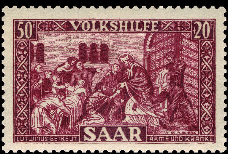 Visibility: public Image owner: none semipostal 11/10/1950 50fr+20fr issue=public assistance unwmk Crops No visible images cropped from this one. Measurements Resolution is unknown. Source Source name: Colnect File URL: http://i.colnect.net/b/518/673/Lutwinus-attends-poor-and-sick.jpg Uploaded August 25, 2014, 11:51 pm by Stan Shebs |