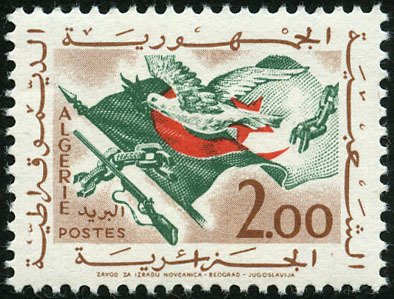 Visibility: public Image owner: none postage 1/6/1963 2fr d=flag of Algeria (1963) unwmk Crops No visible images cropped from this one. Measurements Resolution is unknown. Source Source name: Colnect File URL: http://i.colnect.net/b/3727/013/Symbol-of-peace.jpg Uploaded October 6, 2017, 3:40 pm by Stan Shebs |