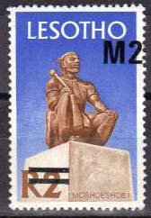 Visibility: public Image owner: none postage 10/20/1980 2m issue=1980 surcharges oc=blk on=2r Crops No visible images cropped from this one. Measurements Resolution is unknown. Source Source name: Colnect File URL: http://i.colnect.net/images/b/745/762/Statue-of-King-Moshoeshoe-I.jpg Uploaded August 26, 2014, 12:01 am by Stan Shebs |