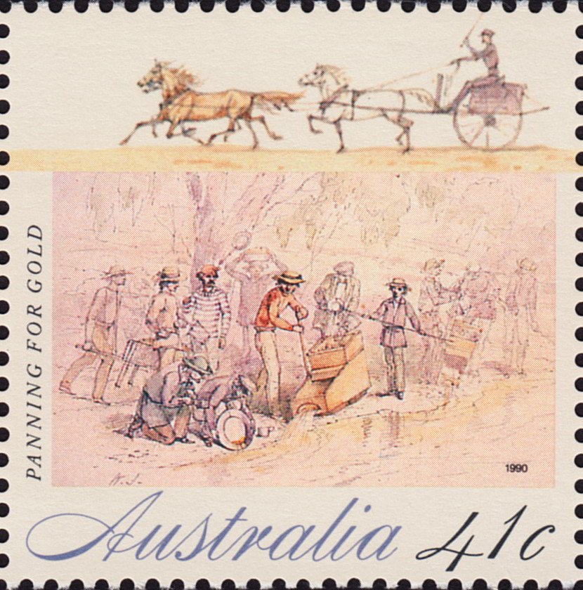 Visibility: public Image owner: none postage 5/16/1990 41c multi dt=Gold Rush d=Panning for gold unwmk perf=13 Crops No visible images cropped from this one. Measurements Resolution is unknown. Source Source name: Colnect File URL: http://i.colnect.net/b/3580/429/Panning-for-gold.jpg Uploaded October 9, 2017, 8:05 pm by Stan Shebs |