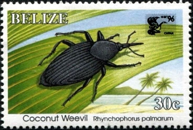 Visibility: public Image owner: none postage 5/17/1996 30c multi issue=CHINA '96 dt=insects (1995 Belize) d=coconut weevil Rhynchophorus palmarum on=issue=1995-30c wmk=crown & CA spiral perf=14 Crops No visible images cropped from this one. Measurements Resolution is unknown. Source Source name: Colnect File URL: http://i.colnect.net/b/4025/605/Coconu-weevil.jpg Uploaded October 16, 2017, 1:32 pm by Stan Shebs |