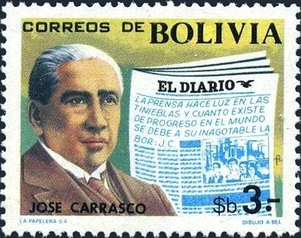 Visibility: public Image owner: none postage 6/13/1977 3.00b multi issue=Bolivian Newspapers dt=Bolivian Newspapers unwmk Crops No visible images cropped from this one. Measurements Resolution is unknown. Source Source name: Colnect File URL: http://i.colnect.net/b/4164/472/Jos-eacute--Carrasco-founder-of-the-newspaper--quot-El-Diario-quot-.jpg Uploaded October 16, 2017, 9:19 pm by Stan Shebs |