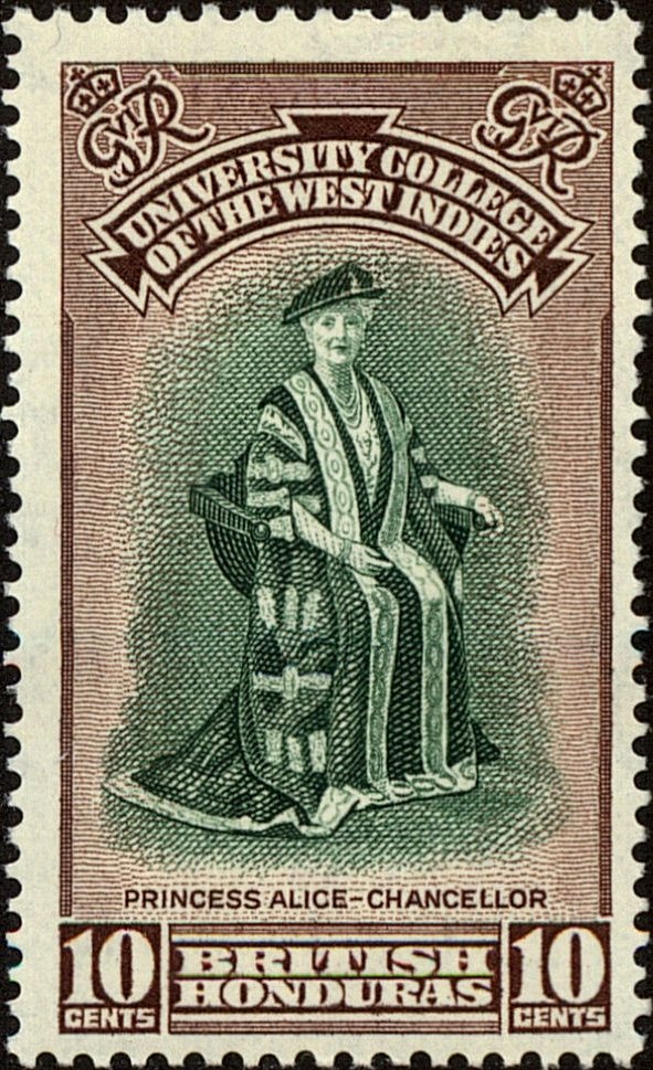 Visibility: public Image owner: none postage 2/16/1951 10c brnvio&grn issue=University d=Princess Alice as chancellor wmk=mult crown & script CA Crops No visible images cropped from this one. Measurements Resolution is unknown. Source Source name: Colnect File URL: http://i.colnect.net/b/3839/313/University-College-of-the-West-Indies---Princess-Alice.jpg Uploaded October 17, 2017, 10:05 pm by Stan Shebs |
