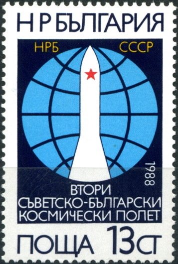 Visibility: public Image owner: none postage 6/7/1988 13st multi issue=2nd Joint Bulgaria-Soviet Union Space Flight unwmk perf=13 Crops No visible images cropped from this one. Measurements Resolution is unknown. Source Source name: Colnect File URL: http://i.colnect.net/b/3415/545/2nd-Joint-USSR--Bulgaria-Space-Flight.jpg Uploaded October 19, 2017, 3:55 pm by Stan Shebs |