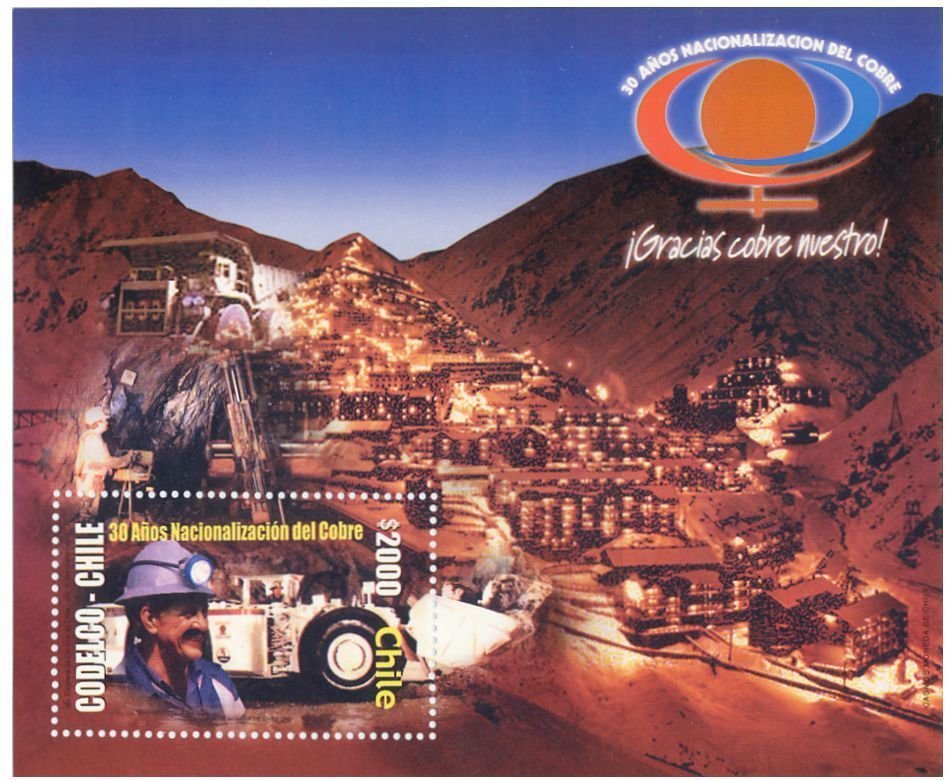 Visibility: public Image owner: none Crops No visible images cropped from this one. Measurements Resolution is unknown. Source Source name: Colnect File URL: http://i.colnect.net/b/4039/118/30-Years-Nationalization-of-Copper.jpg Uploaded October 25, 2017, 1:31 am by Stan Shebs |