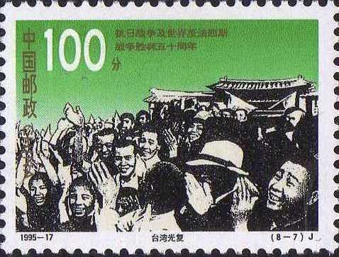 Visibility: public Image owner: none postage 9/3/1995 100f multi issue=50th Anniversary of End of Second World War d=Liberation of Taiwan unwmk perf=11x11.25 Crops No visible images cropped from this one. Measurements Resolution is unknown. Source Source name: Colnect File URL: http://i.colnect.net/b/4385/802/Liberation-of-Taiwan.jpg Uploaded October 25, 2017, 3:28 pm by Stan Shebs |