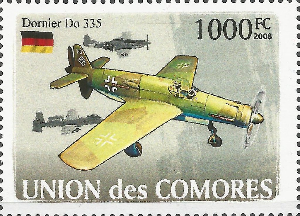 Visibility: public Image owner: none postage 10/1/2008 1000fr multi issue=World War II Fighter Airplanes unwmk perf=13 Crops No visible images cropped from this one. Measurements Resolution is unknown. Source Source name: Colnect File URL: http://i.colnect.net/b/4376/156/Dornier-Do-335.jpg Uploaded October 27, 2017, 2:02 am by Stan Shebs |