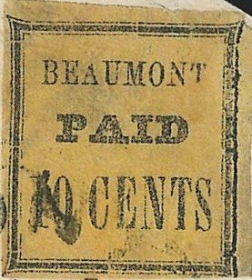 Type: stamp Issuer: Beaumont, TX Date: 1861 Denom: ?