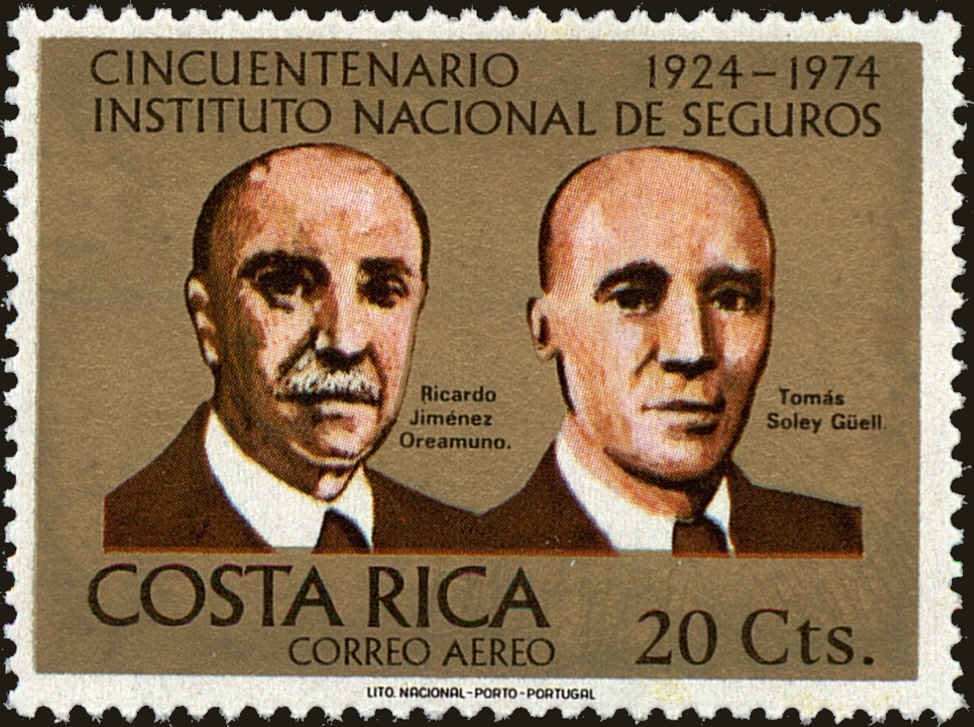 Visibility: public Image owner: none airmail 10/14/1974 20c blk&dkbrn issue=100th Anniversary of the Birth of Roberto Brenes Mesen unwmk Crops No visible images cropped from this one. Measurements Resolution is unknown. Source Source name: Colnect File URL: http://i.colnect.net/b/4375/986/Ricardo-Jiménez-Oreamuno-and-Tomás-Soley-Güell.jpg Uploaded October 30, 2017, 7:30 pm by Stan Shebs |