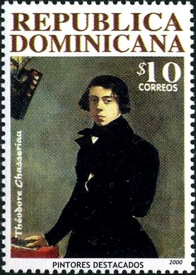 Visibility: public Image owner: none postage 5/5/2000 $10 multi dt=paintings (2000 Dominican Republic) d=Portrait of Man - Theodore Chasseriau wmk=crosses & circles perf=13.5x13.25 Crops No visible images cropped from this one. Measurements Resolution is unknown. Source Source name: Colnect File URL: http://i.colnect.net/b/4164/375/Painting-by-Theodore-Chasseriau.jpg Uploaded November 5, 2017, 1:25 am by Stan Shebs |