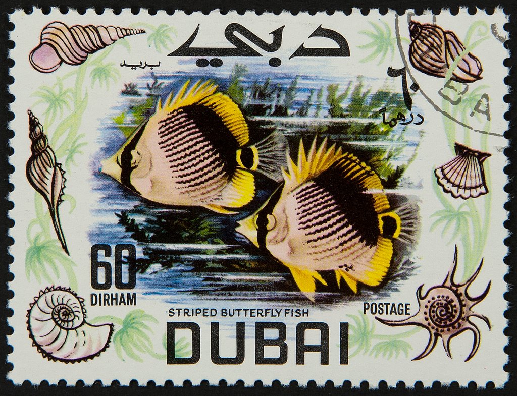 Type: stamp Issuer: Dubai Date: 1969 Denom: ?