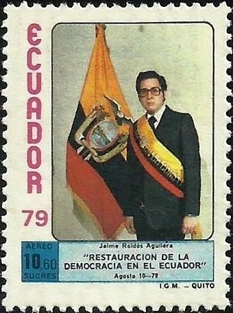 Visibility: public Image owner: none airmail 9/27/1979 10.60s multi issue=Restoration of Democracy unwmk Crops No visible images cropped from this one. Measurements Resolution is unknown. Source Source name: Colnect File URL: http://i.colnect.net/b/4176/420/President-Jaime-Roldós-Aguilera-country-flag.jpg Uploaded November 6, 2017, 4:18 pm by Stan Shebs |