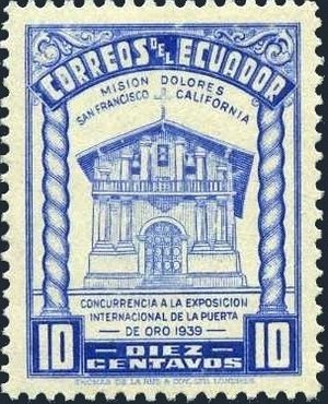 Visibility: public Image owner: none postage 6/16/1939 10c ultra issue=Golden Gate Expo d=Dolores Mission, San Francisco unwmk perf=12 Crops No visible images cropped from this one. Measurements Resolution is unknown. Source Source name: Colnect File URL: http://i.colnect.net/b/3999/163/Dolores-Mission-San-Francisco.jpg Uploaded November 6, 2017, 4:45 pm by Stan Shebs |