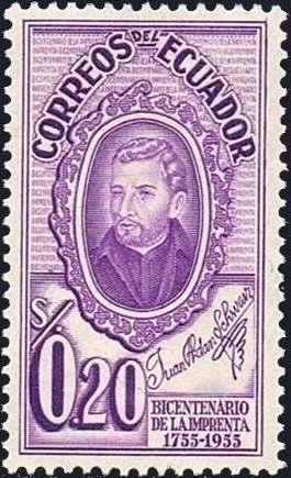 Visibility: public Image owner: none postage 8/27/1956 20c ltvio issue=Ecuador printing 200th d=Brother Juan Adam Schwarz unwmk Crops No visible images cropped from this one. Measurements Resolution is unknown. Source Source name: Colnect File URL: http://i.colnect.net/b/4002/082/J-A-Schwarz.jpg Uploaded November 6, 2017, 6:58 pm by Stan Shebs |