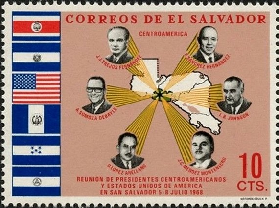 Visibility: public Image owner: none postage 1/20/1969 10c multi issue=Meeting of U.S. President Lyndon B. Johnson , with Central American Presidents, San Salvador unwmk Crops No visible images cropped from this one. Measurements Resolution is unknown. Source Source name: Colnect File URL: http://i.colnect.net/b/4110/527/Presidents-and-Flags.jpg Uploaded November 6, 2017, 8:58 pm by Stan Shebs |